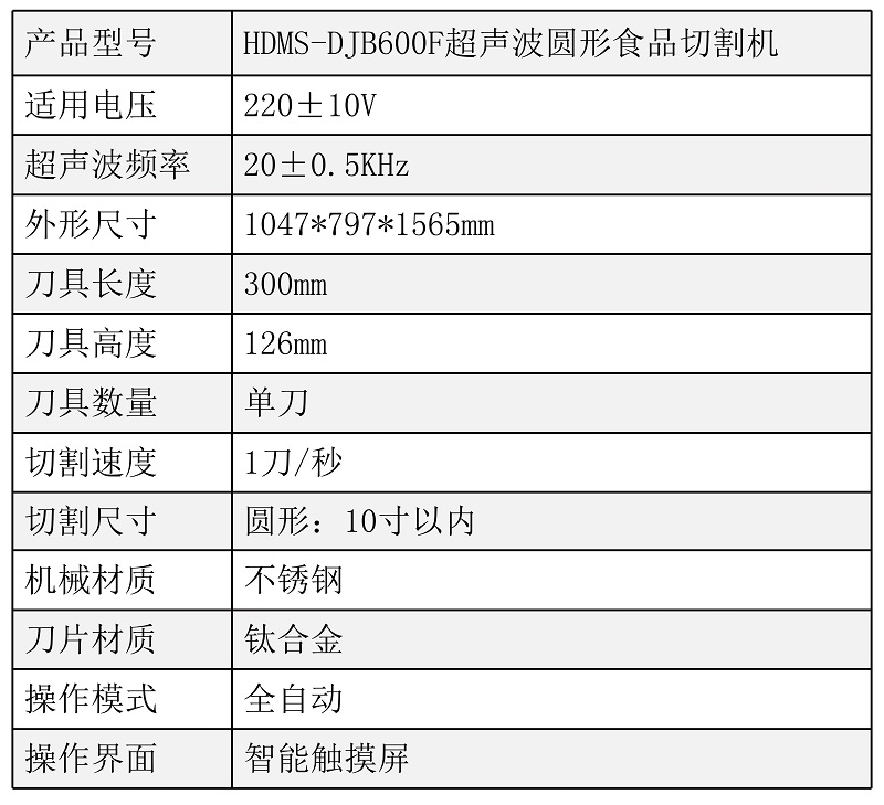 該設備配備單把超聲波刀片,可切圓形(只限一個圓蛋糕),也可切方形