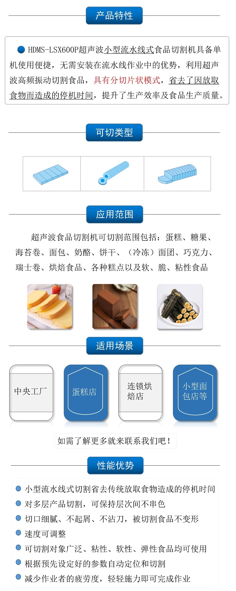 該設(shè)備配備單把超聲波刀片,可切圓形(只限一個圓蛋糕),也可切方形