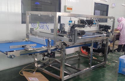 該設備適用于產量較大的食品流水線,可切正/長方形、片狀